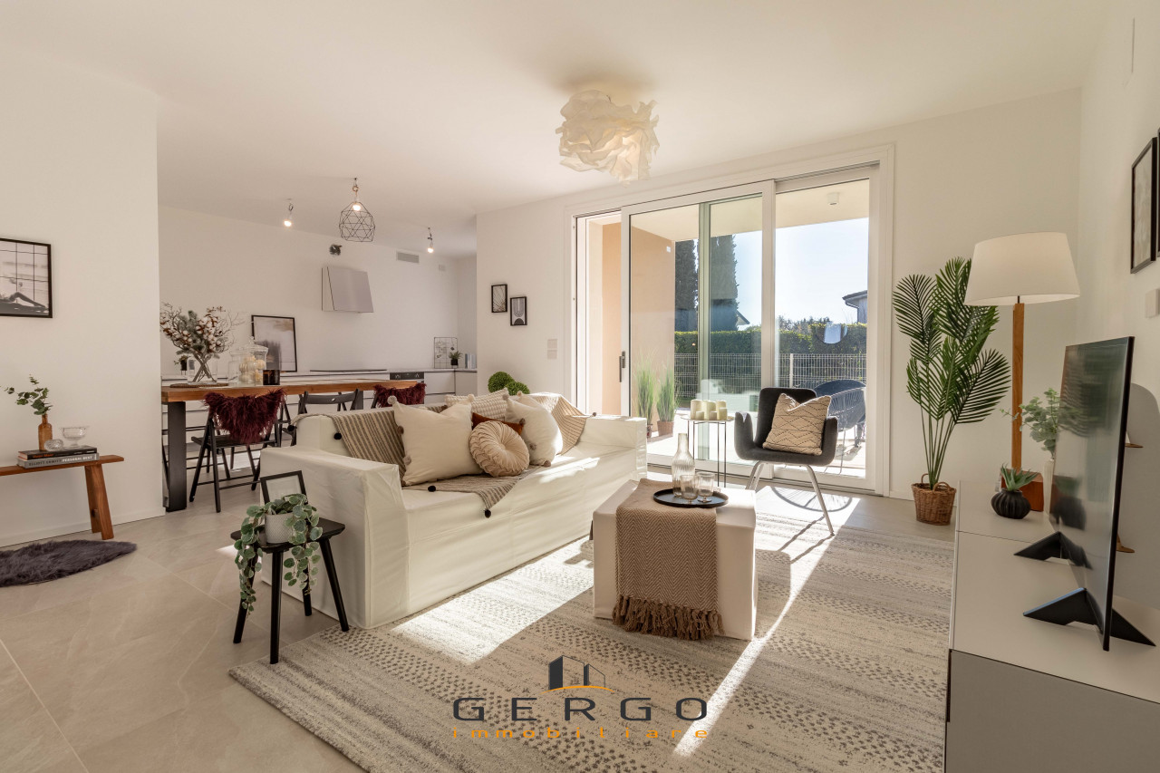 (Per INFO Roberto 3453195338) NOSTRA ESCLUSIVA - A Montebelluna, in una delle più rinomate zone del centro e con vista su Santa Maria in Colle, proponiamo un nuovo appartamento con 3 camere al piano terra, facente parte del Residence "Anna"; composto da: ampio soggiorno con zona riservata alla cucina e loggia di 12 mq, disimpegno, bagno/lavanderia, camera matrimoniale, camera doppia e cameretta, altro bagno, giardino privato di 235 mq; nell'interrato (servito da ascensore), presente un garage doppio in larghezza con wallbox per la ricarica di auto elettriche, cantina/lavanderia separata e posto auto esterno riservato di 12,50 mq. La proposta rappresenta il massimo attualmente sul mercato a livello di classe energetica, coibentazione dell'involucro con cappotto rinforzato, serramenti con vetro triplo, ventilazione meccanica con scambiatore di calore ai fini dei ricambi d'aria e utile al raffreddamento di mezza stagione; elevato confort acustico; struttura antisismica; impianto centralizzato con pompe di calore, riscaldamento e raffrescamento a pavimento, domotica, impianto fotovoltaico da 20 Kwp centralizzato con batterie d'accumulo e colonnine di ricarica auto, allarme. Rif. A6889