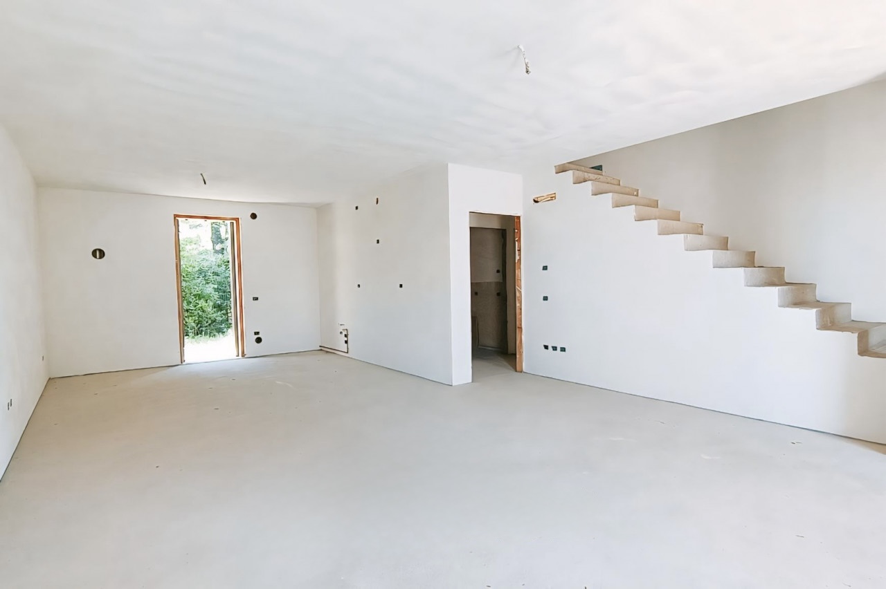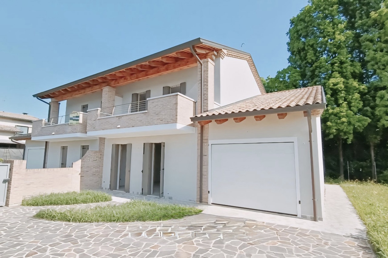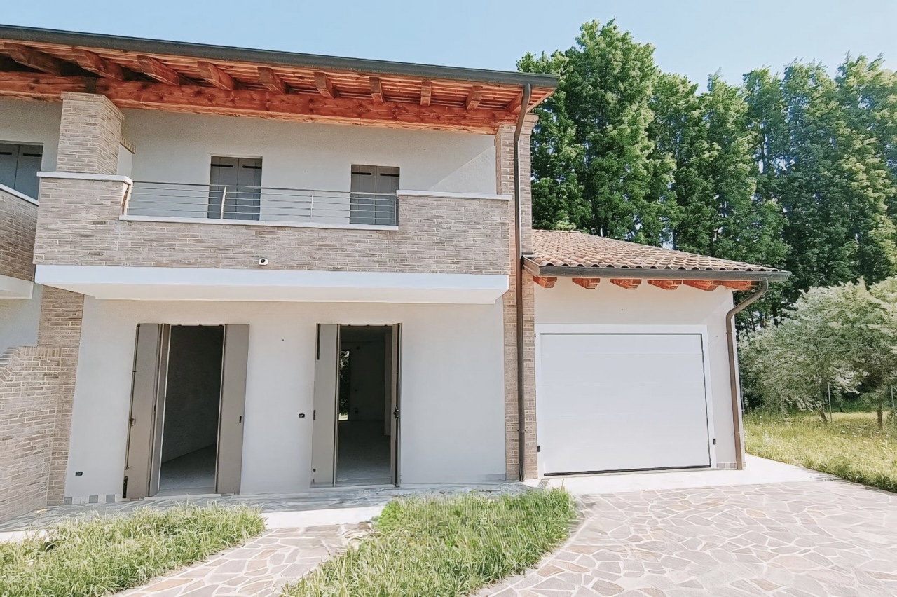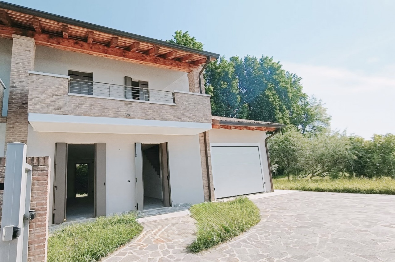 (Per INFO 3316190143) A Campodarsego proponiamo nuove bifamiliari con ampi spazi interni ed esterni, ideali per famiglie di 4/5 persone. Collocate in un contesto di recente costruzione, a confine con ampi spazi verdi, queste nuove bifamiliari si sviluppano su due piani, così distribuiti: al piano terra ampia zona giorno di 44 mq, dove si possono sviluppare zona cucina/pranzo e salotto, un comodo bagno e un ampio garage di 34 mq con angolo lavanderia. Dal soggiorno, attraverso una bella scala aperta, si accede alla zona notte composta da una camera matrimoniale di 20 mq, che si affaccia su un terrazzo di 13 mq, una seconda camera doppia e una terza camera di 13 mq travata a vista. Completa il piano un bagno completo. A contorno della villetta troviamo un bel giardino con caminetto esterno vicino alla cucina per serate estive con gli amici. Viene finita in classe A4 con impianto di riscaldamento a pavimento e impianto fotovoltaico da 6 kwp. Possibilità di personalizzare le finiture. Rif. B6146