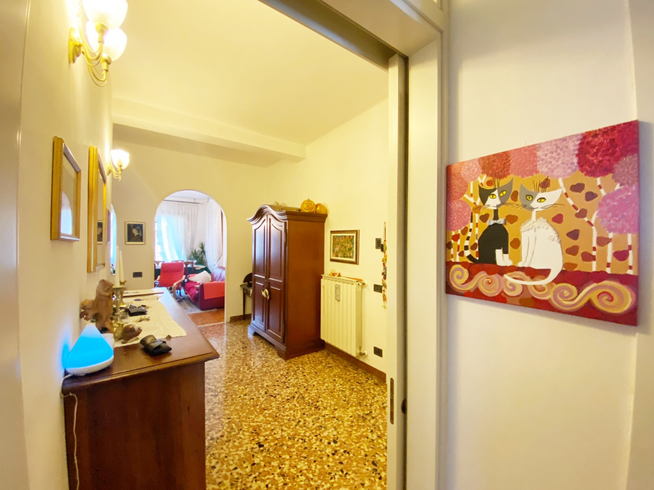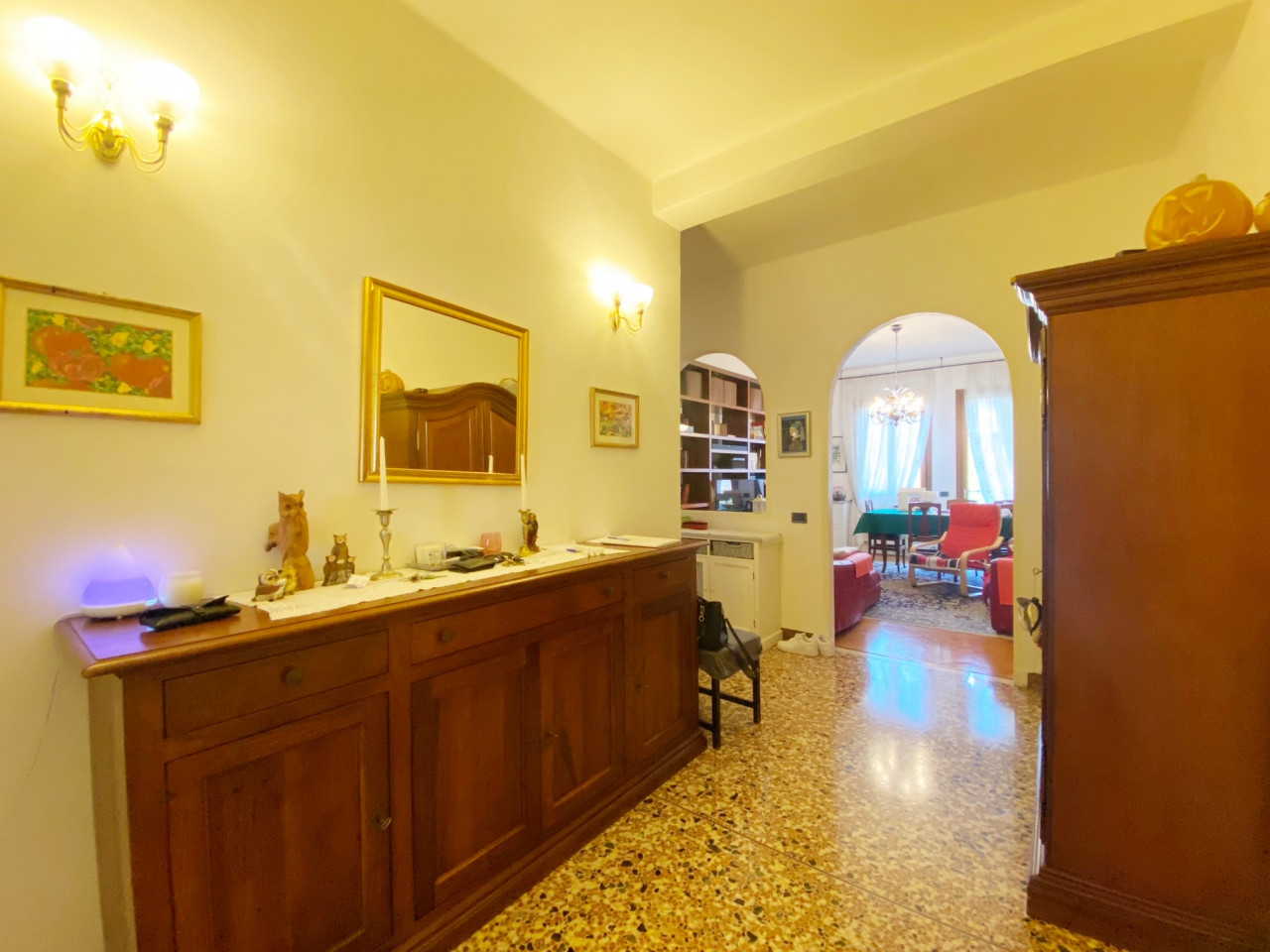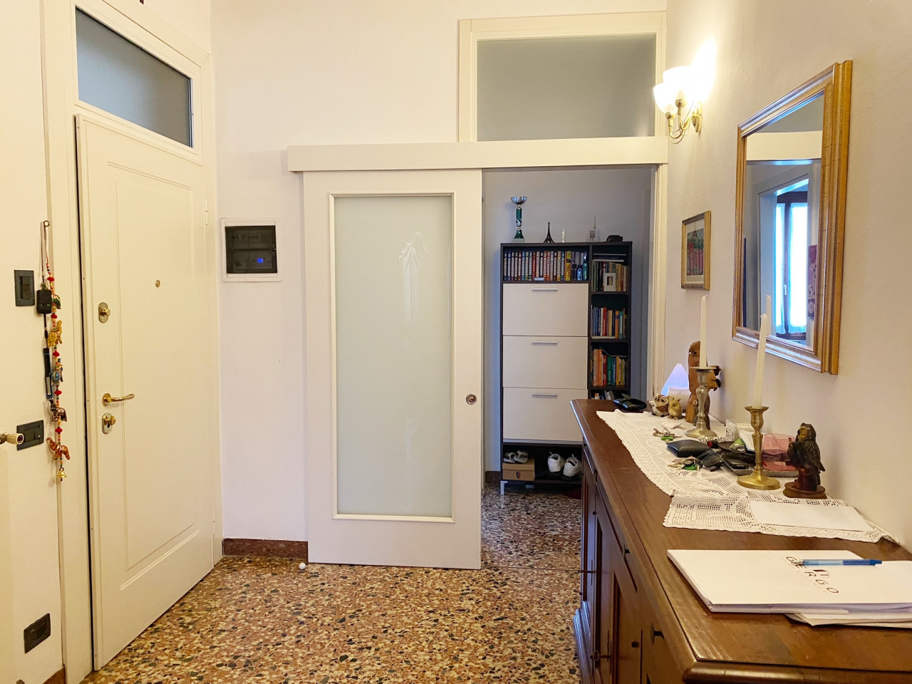 (Per INFO Mara 3481536890) A Treviso, zona tribunale, a soli 400 mt da Porta Santi Quaranta, proponiamo in vendita appartamento dalle ampie metrature, in una palazzina di sole sei unità con un altissimo potenziale. Si compone di: ingresso dalle generose dimensioni che porta al soggiorno ampio e luminoso con poggiolo panoramico sulla città e sul verde circostante e, inoltre, in questo ambiente è stato ricavato un funzionale studio. La cucina, intima e separata dal soggiorno, è servita anch'essa da una veranda ad oggi sfruttata come lavanderia. La zona notte conta una camera padronale da 18 mq, una doppia da quasi 14 mq, una singola ad oggi adibita a studio e cabina armadio e un bagno ampio e finestrato. Il legno, posato a spina di pesce, ed il pavimento veneziano rendono questo appartamento contemporaneo e lussuoso allo stesso tempo. Dispone di serramenti in legno doppio vetro, riscaldamento autonomo con caldaia a condensazione e predisposizione per il raffrescamento. Al piano terra completa la proprietà un garage con annesso magazzino di ben 33 mq. L'unità immobiliare è sita al terzo piano senza ascensore, ma è in corso una valutazione condominiale per l'installazione di un ascensore esterno. Posizione fantastica per raggiungere con una piacevole passeggiata il centro città con i suoi servizi e le sue botteghe. Rif. A7290